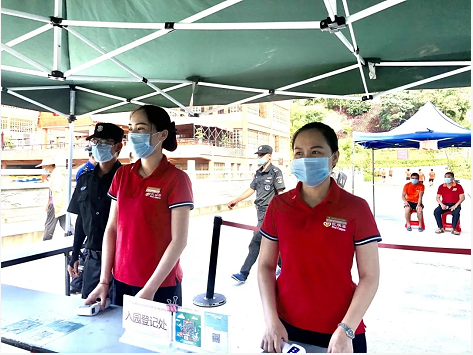 随着“十一中秋”脚步的临近,应对“十一中秋”假日旅游,在节前夕,做好景区疫情防控人流管控及漂流突发事件处理是景区的工作重点的重中之重。因此我景区响应上级政府部门关于新型冠状病毒肺炎疫情防控工作相关要求,为坚决贯彻落实上级单位和政府、行业主管部门疫情防控要求,确保各项防控流程及措施落到实处,确保景区游客接待工作安全、有序开展,2020年9月24日星期四上午,五指山红峡谷文化旅游区在景区开展《十一黄金周景区疫情防控演练应急》及《十一黄金周景区漂流突发事件处理演练》。