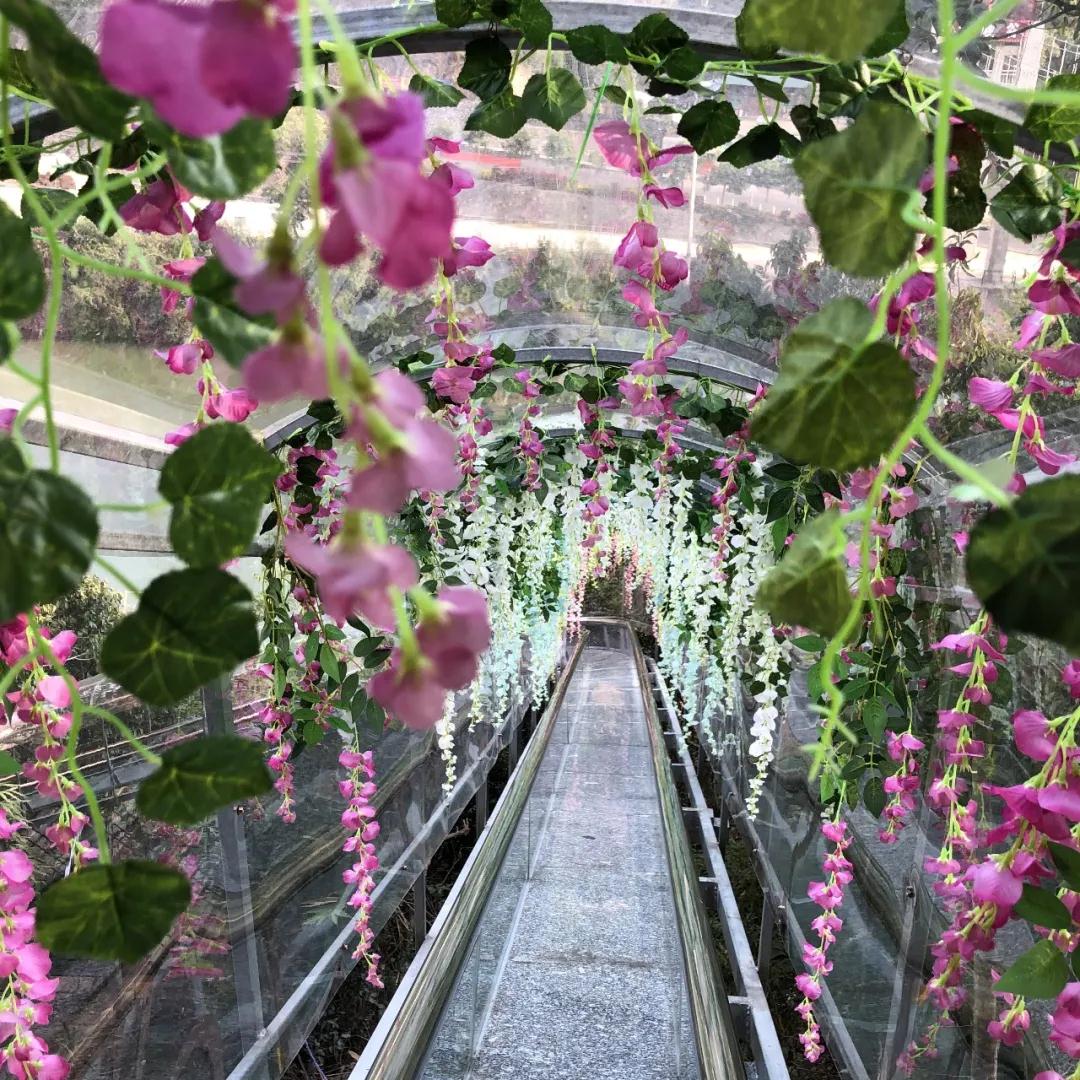 悬空的滑道与透明顶层的完美融合盘绕于自然景点和树木花丛间