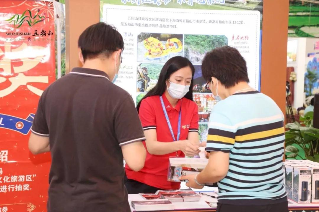 此次参展,五指山红峡谷文化旅游区充分运用漂流皮划艇、防寒服实物、宣传折页、精美礼品等,将红峡谷丰富的绿色旅游资源和有趣的游玩项目一一展示,让不少游客眼前一亮。