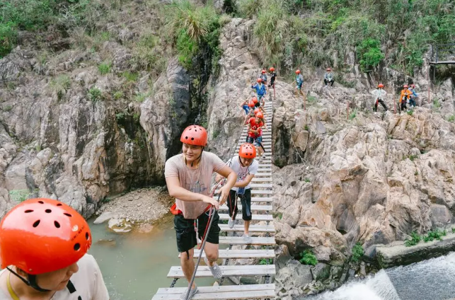 挑战你对高空、水中的平衡感和水流瀑布冲击,让您感受肾上腺素飙升的快感!放眼望去,红峡谷的山川景色大自然的鬼斧神工尽收眼底,让您体验前所未有全身心的冲击感,在满足挑战者征服欲的同时亦可满足游客对大自然的向往~