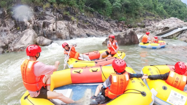 长达3.8公里的红峡谷漂流,落差近百米,水流时而湍急、时而缓慢,险滩急流冲横交错,漂流过程即可享受激流勇进、急缓交错的快感,又可沿途欣赏侧岸热带雨林峡谷的原始植被、奇特地形地貌享受驻艇观物的惬意!