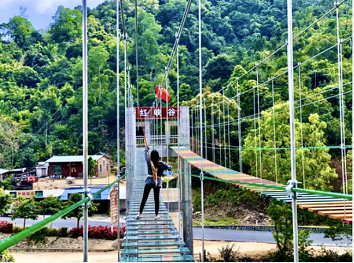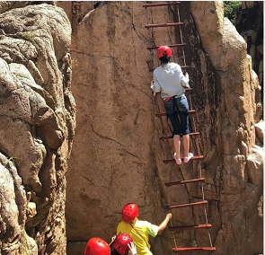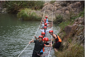 勇者之路分别为勇闯龙谭、飞檐走壁、步步高升、空中芭蕾、深沟高、飞夺泸定桥、摇晃桥、九勇者之路是为了刺激肾上腺素而设计,每一项都会挑战你对高空、水中的平衡感和水流瀑布冲击的快感。